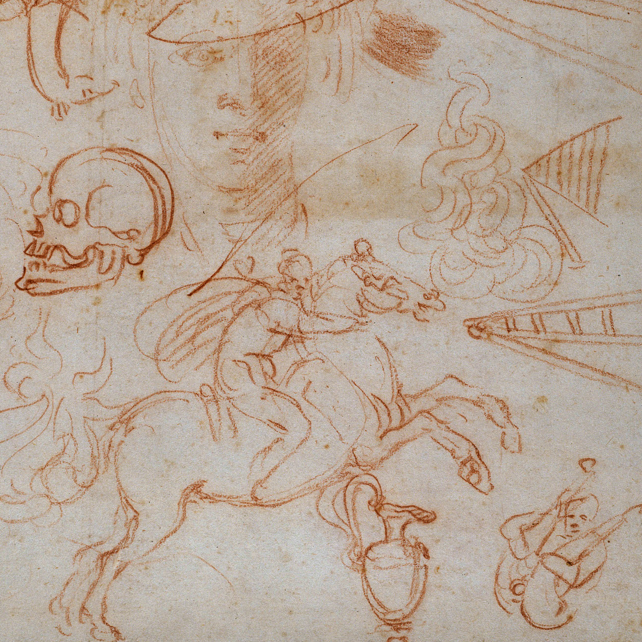 I nove fogli qui selezionati, tutti di difficile e complessa lettura, mostrano l’artista mentre disegna conversando con amici, parenti, allievi, assistenti: frammenti di vita certamente perduti, ma di cui resta traccia proprio sul piano della medialità grazie alla funzione interlocutoria di quei disegni che ci permettono di seguire Michelangelo mentre, in dialogo, schizza territori e paesaggi, copia a memoria opere del passato e scarabocchia divertito ciò che Giorgio Vasari avrebbe scherzosamente definito “gofferie” su carta.