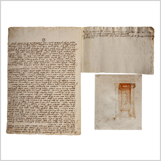 b. Quattro fogli erratici con testi cancellati. CC Byam Shaw 63 + BM Wilde 30 + CB 30 + CB 57