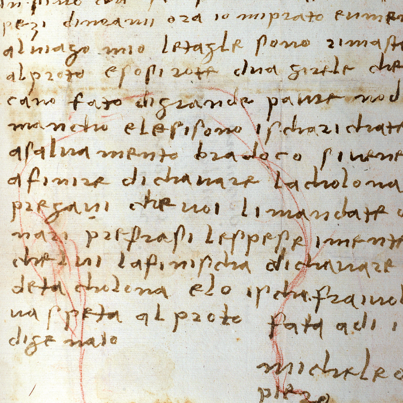 Frugale nell'utilizzo e ossessivo nella custodia, Michelangelo conservò le sue carte per decenni, per poi decidere di riciclare i fogli riscrivendo e ridisegnando su di essi, fino a destinarli al fuoco in due momenti cruciali e ben documentati della sua vita. Questo corpus di documenti casualmente sopravvissuti rappresenta il più complesso e stratificato archivio della sua memoria, lo specchio fedele del rapido fluire di gesti e pensieri, e la chiave d’accesso agli aspetti più intimi e idiosincratici del suo modo di interagire con persone e cose. Moltissimi suoi fogli mostrano segni di riuso nel tempo: a volte la distanza cronologica tra scritte, disegni e ricordi presenti nello stesso foglio è breve e corrisponde a un flusso di lavoro concentrato nel tempo, in altri casi il riuso del supporto è avvenuto dopo anni o, persino, decenni. In questa sezione si sono voluti osservare tre casi particolarmente interessanti e che vanno anche a rappresentare tre diverse tipologie caratterizzate da scritte su disegni, da disegni su scritte e infine da disegni su disegni.